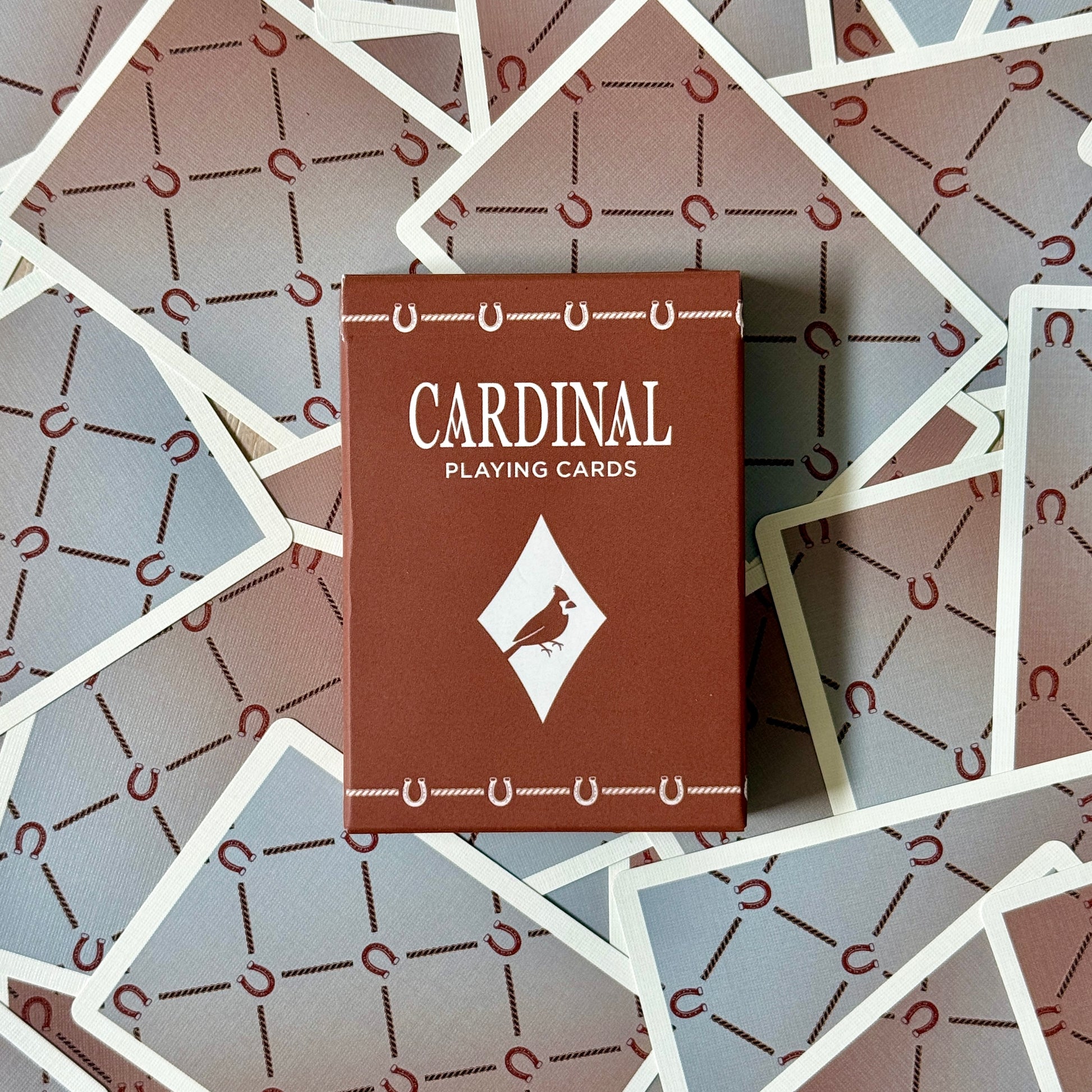 The Horseshoe Deck highlights an iconic symbol of luck paired with rope motifs to create a pattern that feels both timeless and quietly modern. Crafted in the USA using casino-grade card stock with our signature linen finish, this deck is built to last through every shuffle, game night, and display moment.